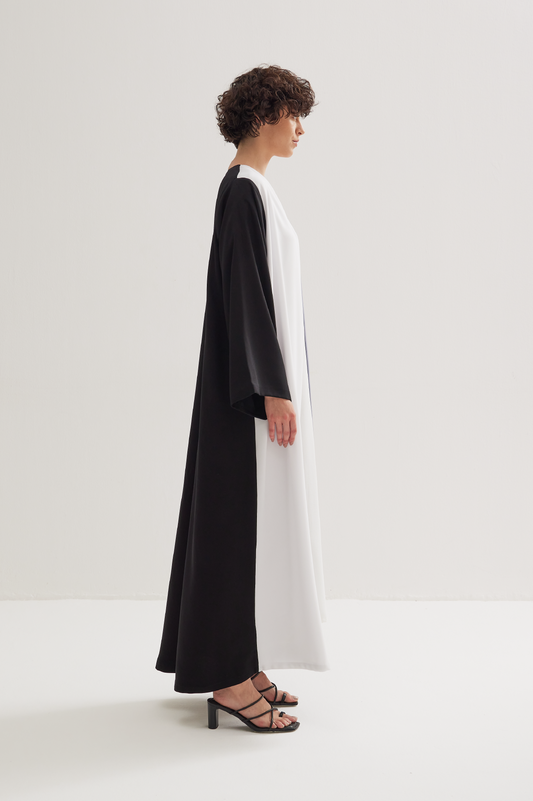 Three-Tone Abaya in Bluish Grey, White, and Black