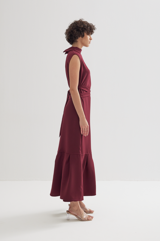 Sold outHigh Neck Sleeveless Dress in Maroon