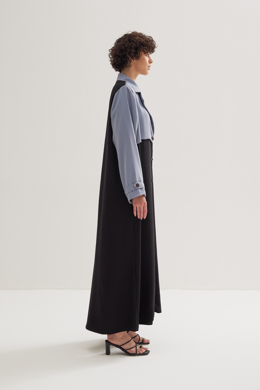 Coat Abaya in Greyish Blue and Black